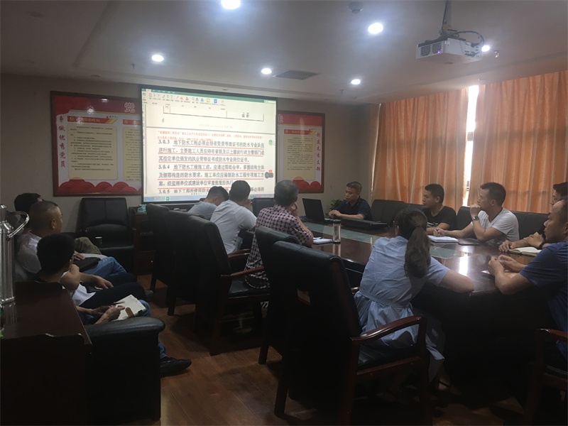 8月22日下午4點(diǎn)30分,點(diǎn)軍城建公司干部職工在會(huì)議室開(kāi)展了課題為《地下防水工程質(zhì)量驗(yàn)收規(guī)范》的學(xué)習(xí)培訓(xùn)。