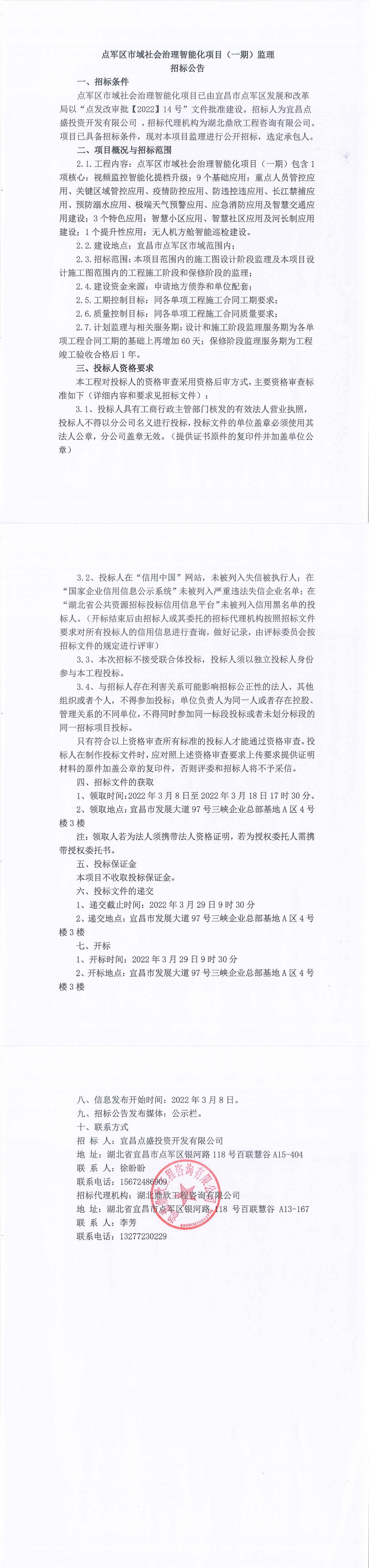 點(diǎn)軍區(qū)市域社會治理智能化項目(一期)監(jiān)理招標(biāo)公告