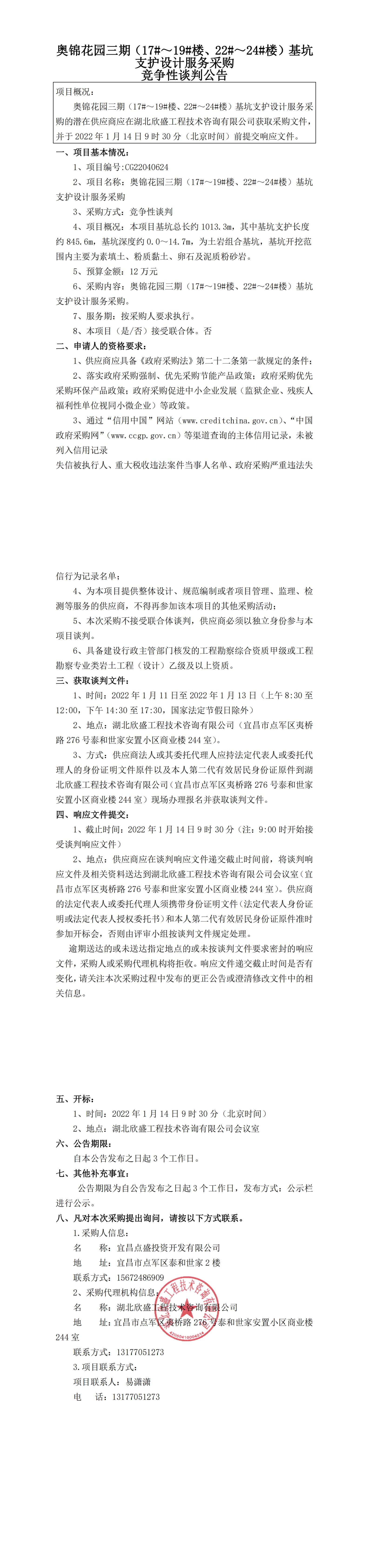 奧錦花園三期(17#~19#樓、22#~24#樓)基坑支護(hù)設(shè)計(jì)服務(wù)采購競爭性談判公告