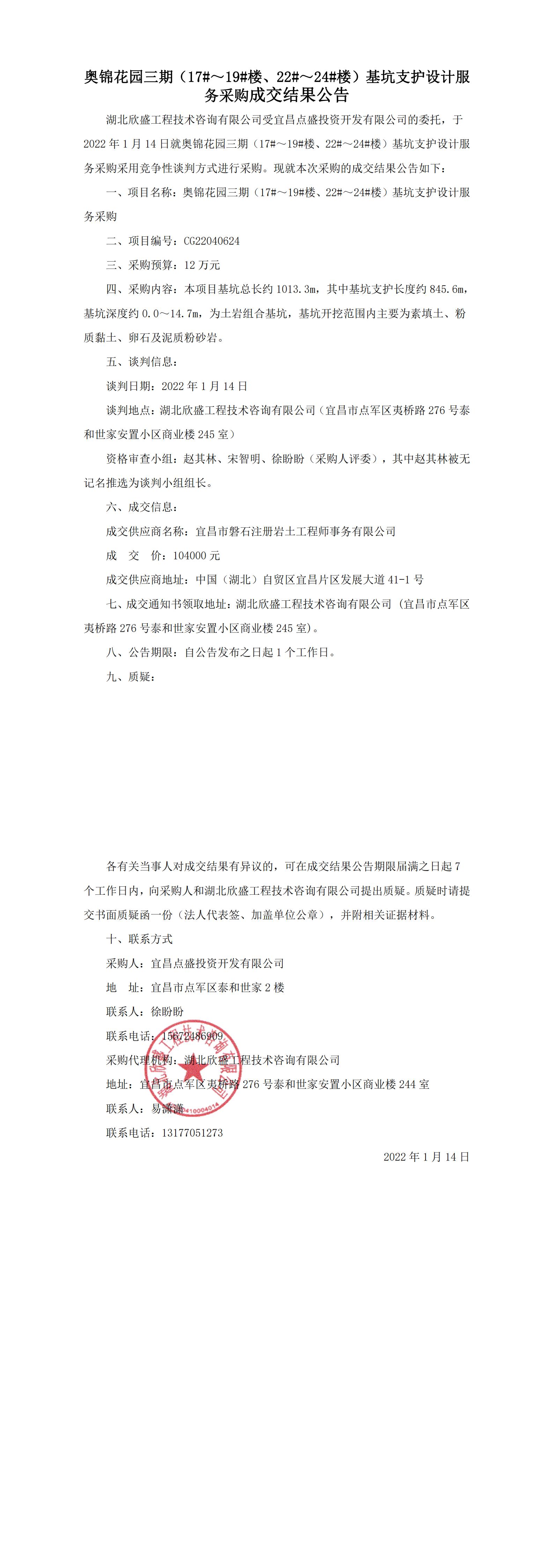 奧錦花園三期(17#~19#樓、22#~24#樓)基坑支護(hù)設(shè)計(jì)服務(wù)采購成交結(jié)果公告