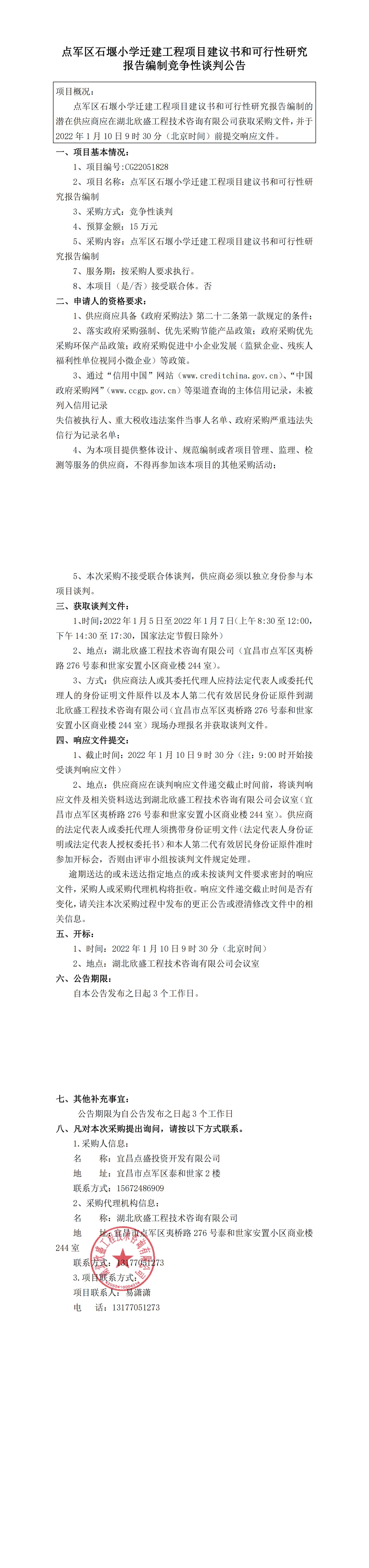點軍區(qū)石堰小學遷建工程項目建議書和可行性研究報告編制競爭性談判公告