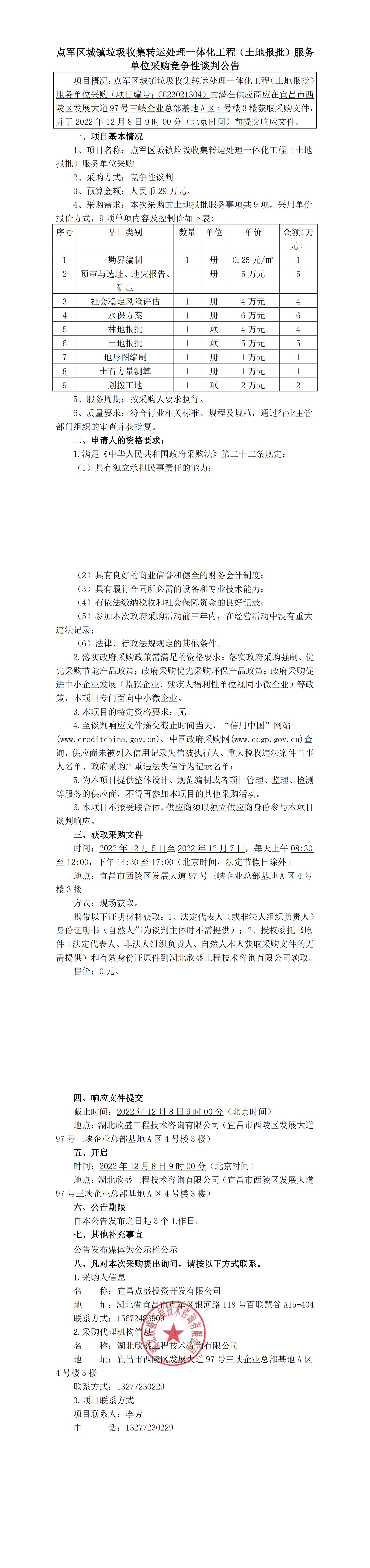 點(diǎn)軍區(qū)城鎮(zhèn)垃圾收集轉(zhuǎn)運(yùn)處理一體化工程(土地報(bào)批)服務(wù)單位采購(gòu)競(jìng)爭(zhēng)性談判公告
