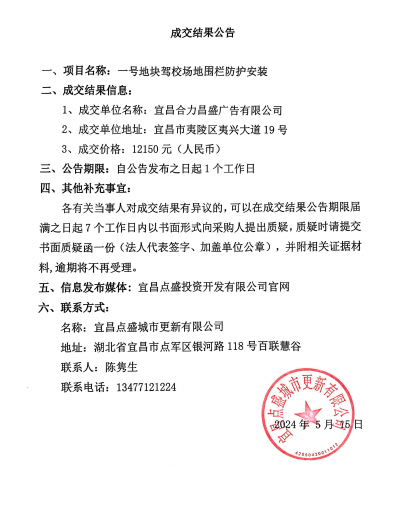 城市更新一號(hào)地塊駕校場(chǎng)地圍欄防護(hù)安裝成交公告