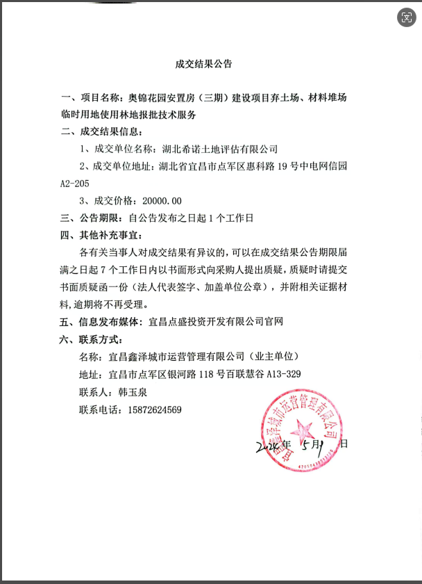 奧錦花園安置房(三期)建設(shè)項(xiàng)目棄土場、材料堆場臨時(shí)用地使用林地報(bào)批技術(shù)服務(wù)成交公告