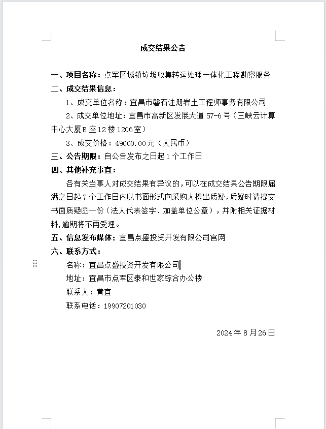 點(diǎn)軍區(qū)城鎮(zhèn)垃圾收集轉(zhuǎn)運(yùn)處理一體化工程勘察服務(wù)成交公告