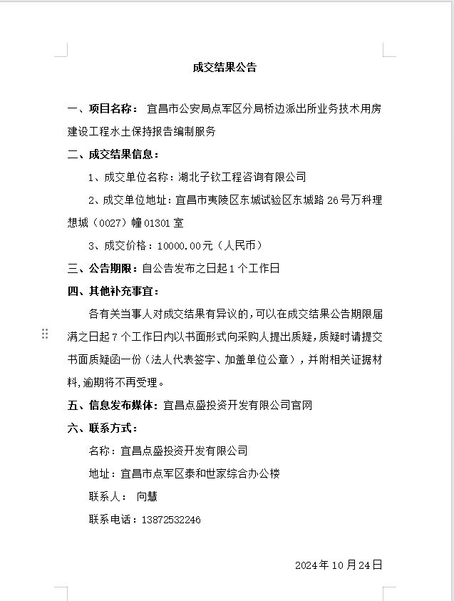 宜昌市公安局點(diǎn)軍區(qū)分局橋邊派出所業(yè)務(wù)技術(shù)用房建設(shè)工程水土保持報(bào)告編制服務(wù)成交公告