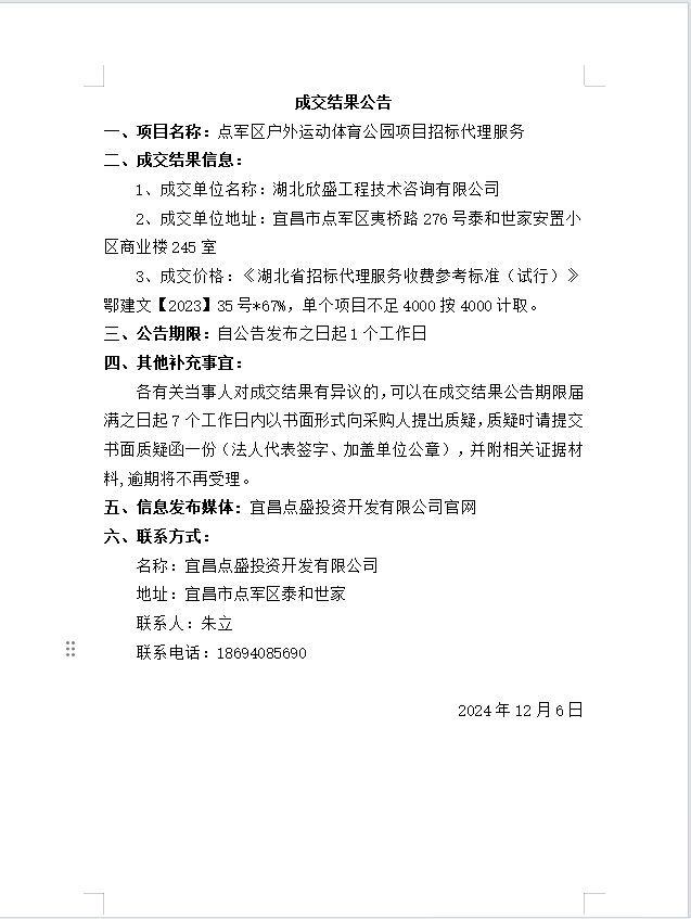 發(fā)布時(shí)間:2024/12/6 來(lái)源:宜昌點(diǎn)盛投資開(kāi)發(fā)有限公司 訪問(wèn):7361