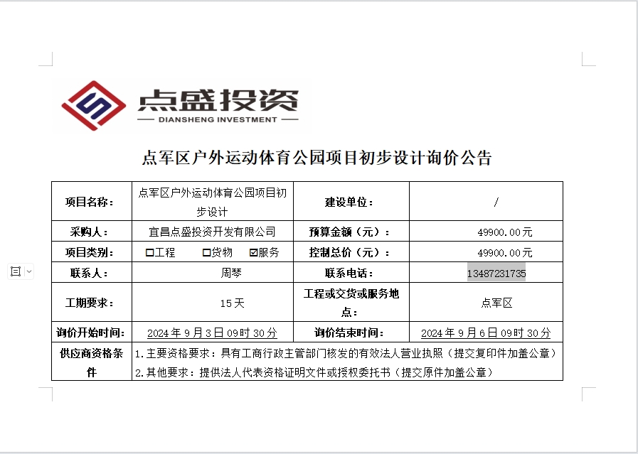 發(fā)布時間:2024/9/3 來源:宜昌點盛投資開發(fā)有限公司 訪問:7241